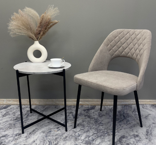 Обеденный стул-полукресло с обивкой велюром Мадера цвета латте и устойчивым металлическим каркасом на четырёх ножках.