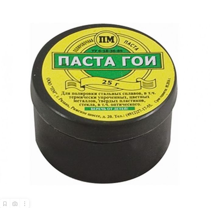 Паста ГОИ в баночке 25гр предназначена для полировки различных поверхностей, обеспечивая высокое качество блеска. Она состоит из трёхвалентного оксида хрома и других компонентов, что позволяет использовать её для полировки и шлифовки разных материалов.