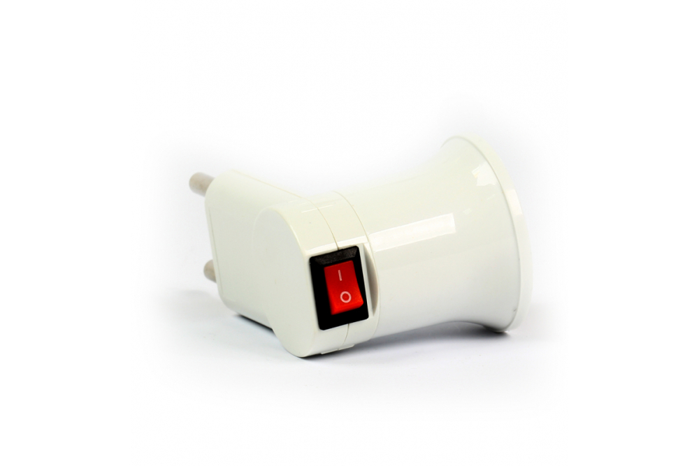 Переходник вилка-Е27 с выключателем от бренда SMARTBUY обеспечивает удобное подключение приборов с цоколем Е27 к источнику питания. Продукт выполнен в белом цвете и оснащен встроенным выключателем для удобства использования.