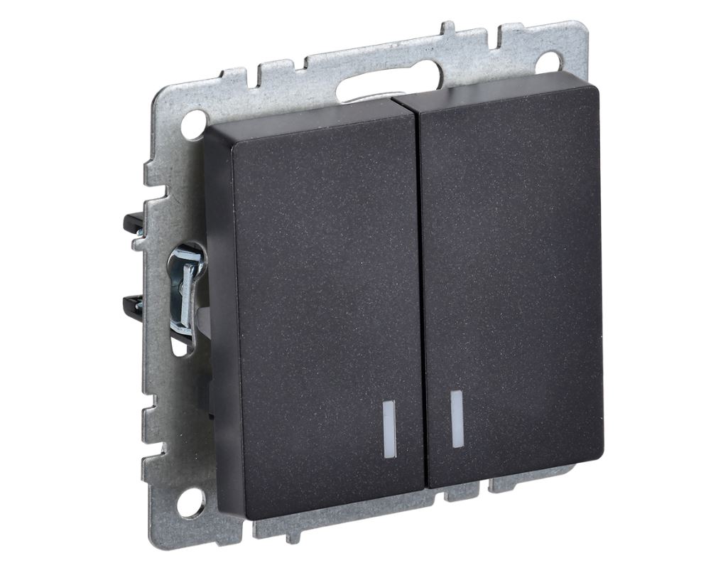 Выключатель двухклавишный с индикацией 10А ВС10-2-1-БрЧ черный BRITE