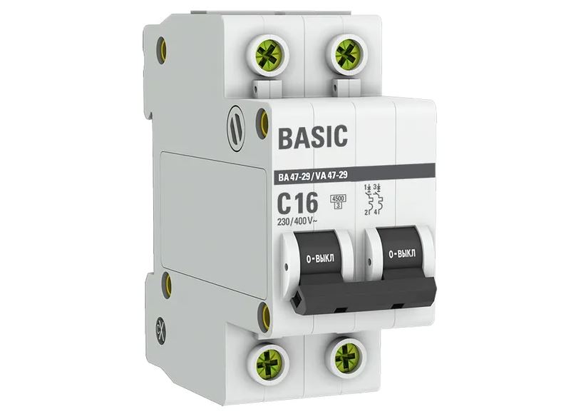 Автоматический выключатель 2P 16А 4.5kA ВА47-29 ЭКФ Basic