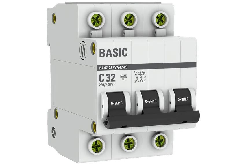 Автоматический выключатель 3P 32А 4.5kA ВА47-29 ЭКФ Basic предназначен для защиты электрических сетей от перегрузок и коротких замыканий. Он имеет трехполюсную конструкцию и замечательную отключающую способность 4,5 кА, что обеспечивает надежную работу в условиях различных нагрузок.