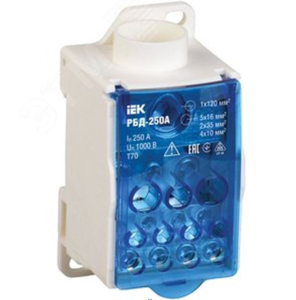 Ключевые особенности: • Номинальный ток 250 А обеспечивает надежную работу в электрических системах. • Входное сечение проводников до 120 мм² и выходное - до 35 мм² позволяет подключать различные конфигурации. • Установка на DIN-рейку упрощает монтаж и демонтаж устройства. • Корпус из негорючего пластика гарантирует безопасность эксплуатации.