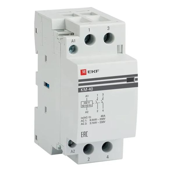 Контактор модульный КМ 40А 2NО (2 мод.) EKF PROxima (KM-2-40-20) предназначен для управления электрическими цепями с номинальным рабочим током до 40 А. Он обеспечивает надежное переключение цепей переменного тока и имеет 2 нормально открытых контакта.