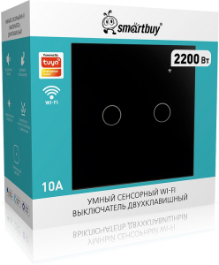 Умный сенсорный выключатель Smartbuy, 2 клавиши, Wi‑Fi, чёрный