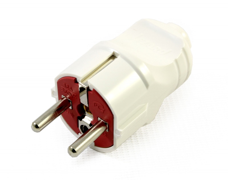 Штепсельная вилка предназначена для подключения электроприборов к бытовой сети переменного тока. Исполнение с заземляющим контактом повышает безопасность эксплуатации и подходит для техники, рассчитанной на подключение по стандарту Schuko.