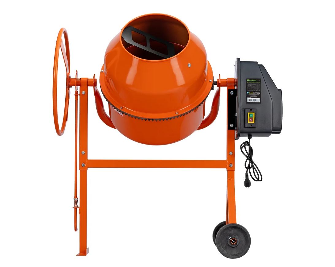 Гравитационный бетоносмеситель для небольших объемов раствора и бетона. Подходит для работ на даче и в частном строительстве.