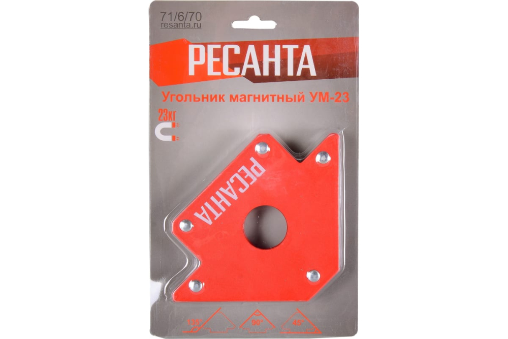 Угольник магнитный УМ-23 Ресанта представляет собой инструмент для быстрого и надежного крепления металлических заготовок во время сварочных работ. Он обеспечивает точное позиционирование деталей и допустимый вес удержания до 23 кг, что позволяет повысить эффективность сварочных операций.