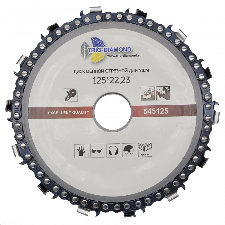 Диск цепной отрезной TRIO-DIAMOND 545125 предназначен для резки, фрезеровки и зачистки древесины с помощью угловых шлифмашин. Он отличается высокой скоростью и плавностью реза, что значительно улучшает качество обработки материалов.