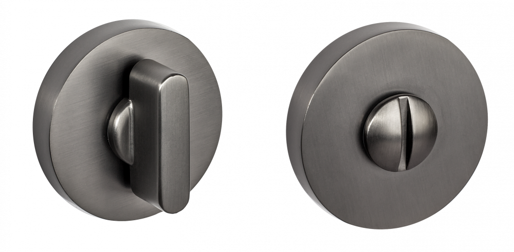 Завертка выполнена в стилистике дверных ручек, имеет тот же цвет, аналогичную форму розетки и снабжена удобным поворотным вертушком.