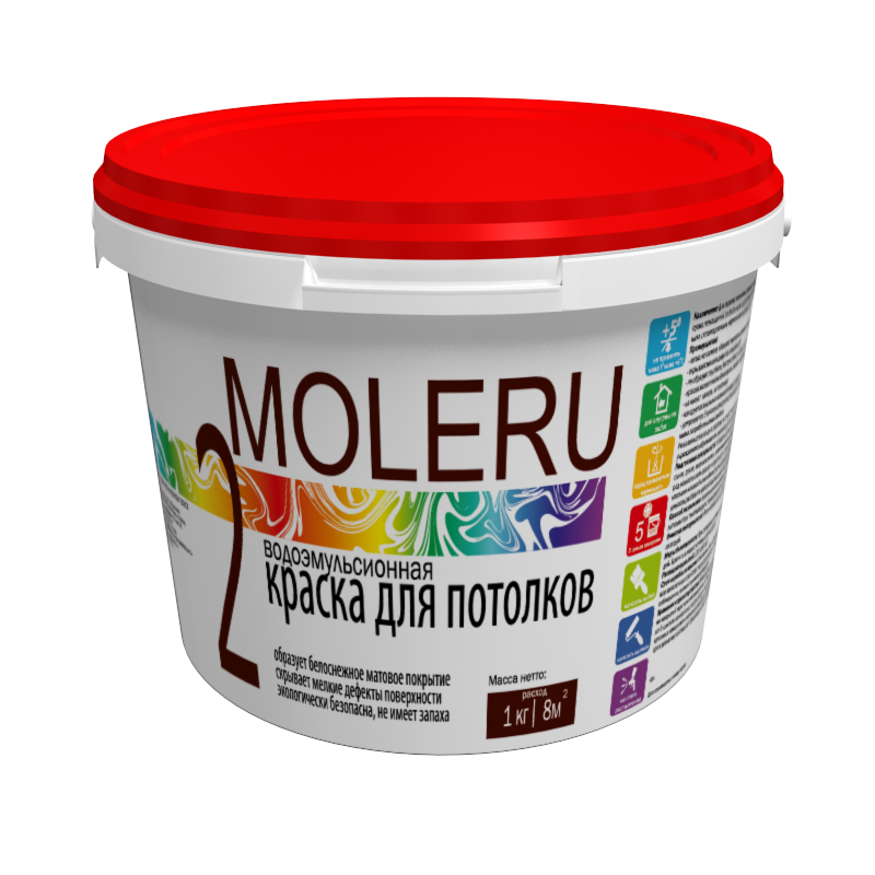 Краска Moleru 2 В/э Для потолков Белый Матовый 14кг