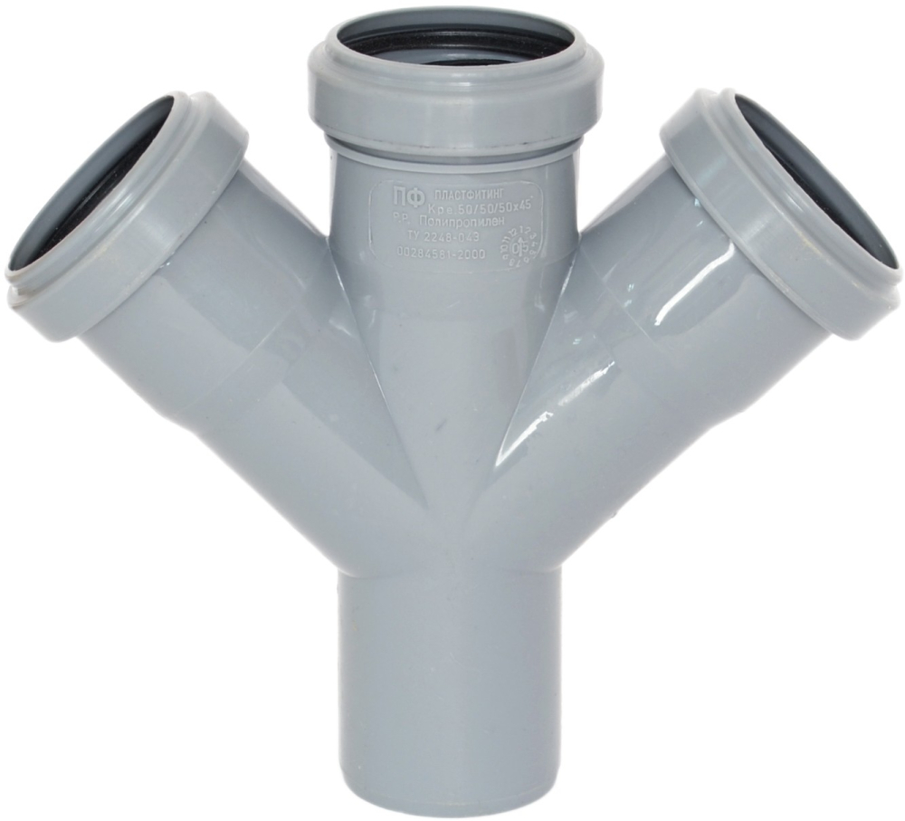 Область применения: Применяется для разветвления внутренних канализационных труб Ø50 при подключении сантехнических приборов.