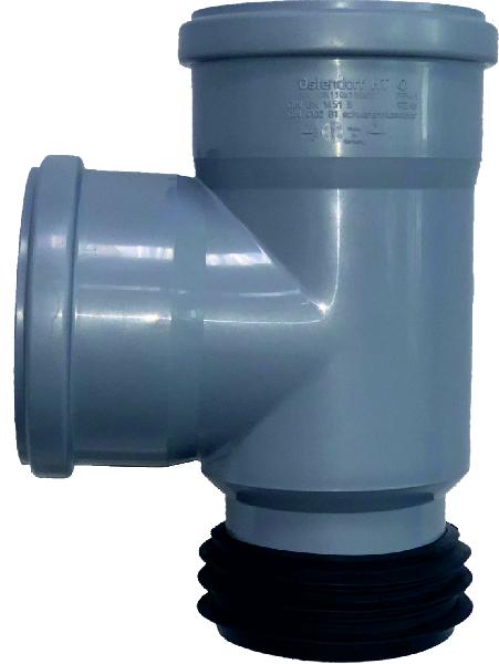 Ремонтный тройник для восстановления повреждённого раструбного соединения на трубе Ø110. Встроенный эластичный патрубок позволяет компенсировать износ и обеспечить герметичный стык при ремонте.