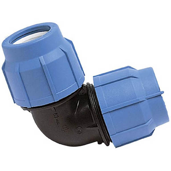 Компрессионный отвод для поворота трубопровода из ПНД на 90° без сварки. Используется для соединения двух участков трубы одинакового диаметра с разборным и обслуживаемым узлом.