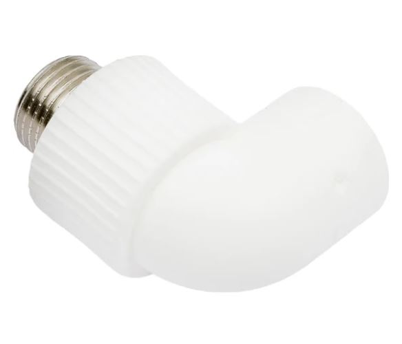 Комбинированный угольник для поворота трубы PP-R Ø20 мм с одновременным переходом на резьбовое соединение 1/2" (наружная резьба). Удобен для подключения приборов и арматуры.