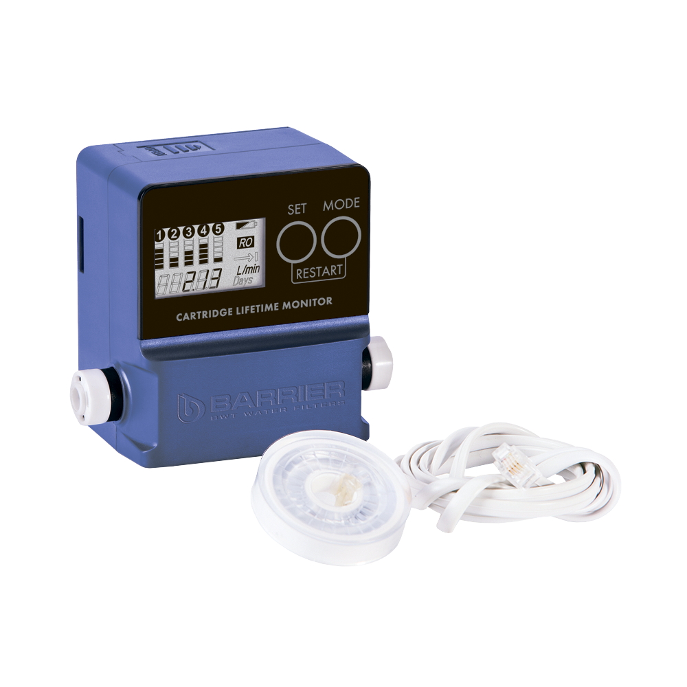 Электронный индикатор, который помогает контролировать срок службы картриджей и своевременно менять фильтрующие элементы в проточных системах.