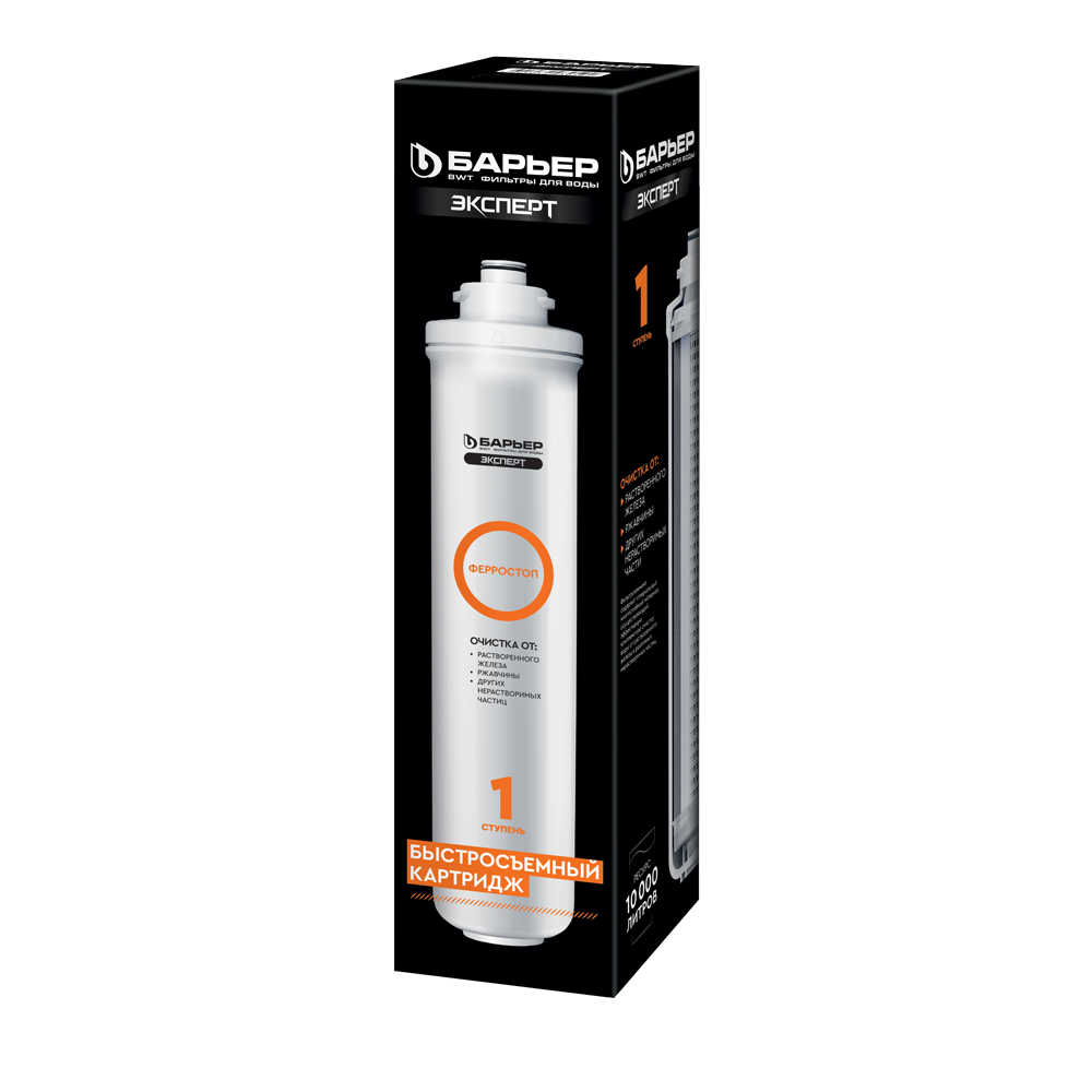 Сменный картридж для проточных фильтров серии BARRIER ЭКСПЕРТ, рассчитанный на работу с водой, содержащей повышенное количество железа.