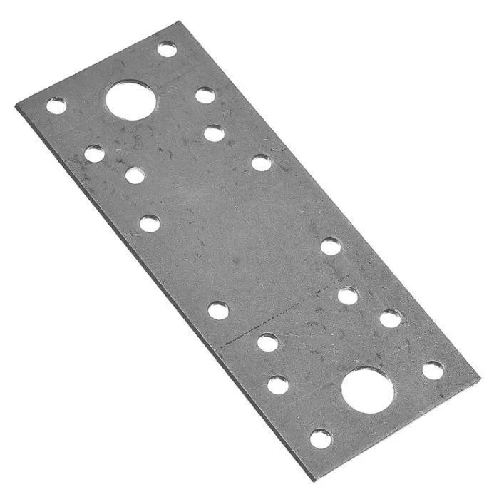 140×55×1,8 Перфорированная крепёжная пластина для соединения и усиления элементов из дерева (брус, доска, лаги) в одной плоскости. При наличии анкерных отверстий помогает крепить деревянные конструкции к основанию из бетона или кирпича через подходящий крепёж.