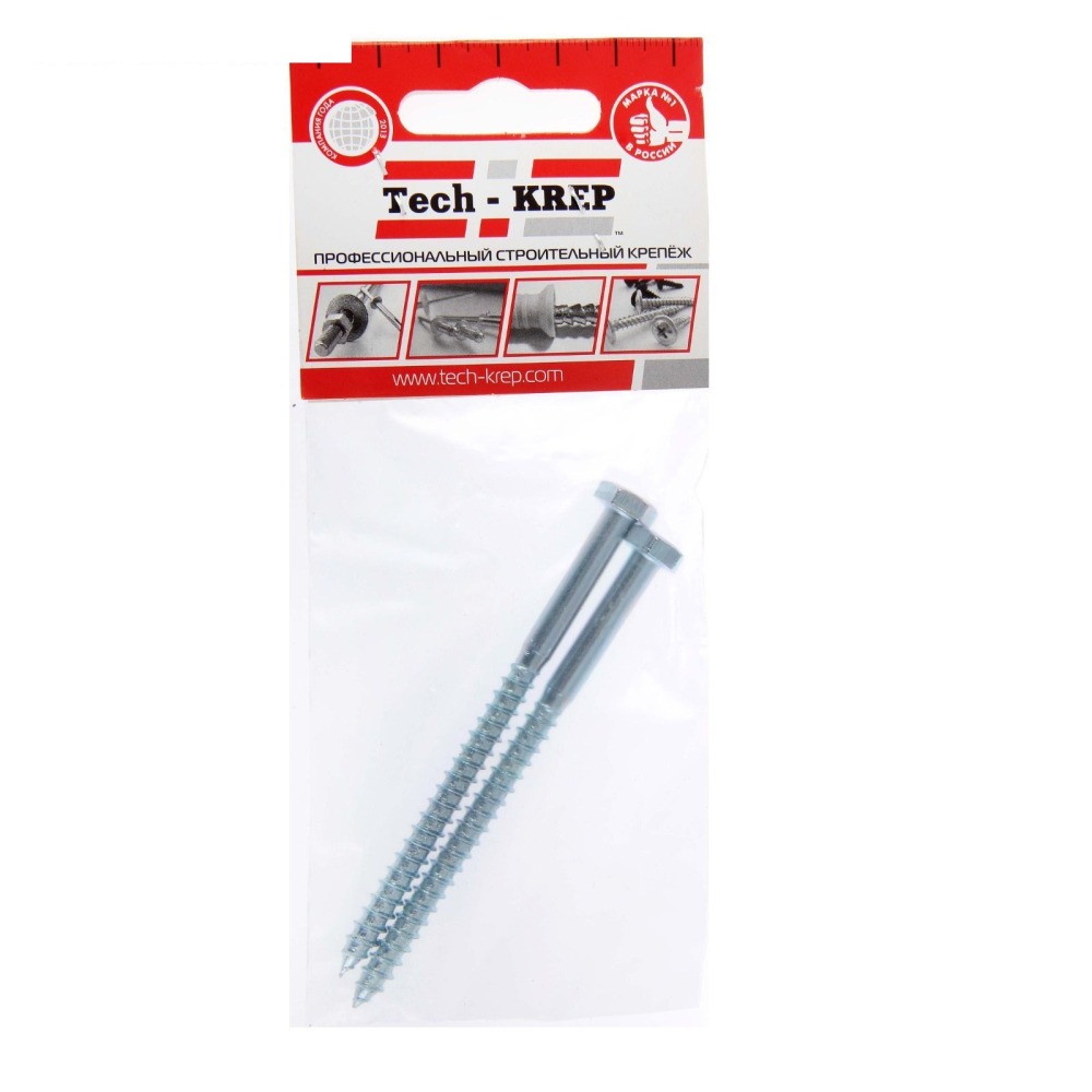 Саморез сантехнический DIN 571 оцинкованный 8×100, 2 шт Шуруп с шестигранной головкой по DIN 571 для крепления к древесине и монтажа через дюбель.