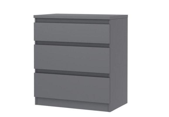 Комод 3 ящика КАСТОР RU, серый — компактный комод с верхним неглубоким и двумя более вместительными ящиками на шариковых направляющих, рассчитанный на повседневное хранение в квартире.