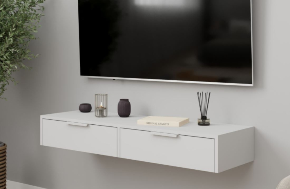 Консоль «АЭРО 22» — удлиненный навесной модуль с выдвижным ящиком для прихожей, спальни или рабочей зоны. Белый цвет и вытянутый формат позволяют использовать изделие как функциональную настенную поверхность для хранения и декора.