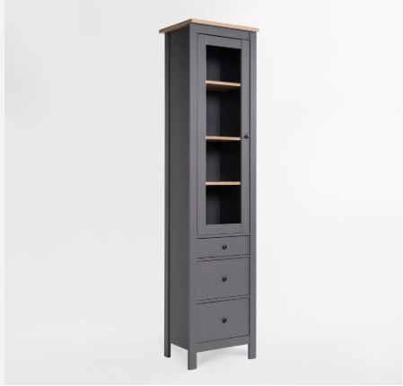 • Узкий витринный модуль экономит место и при этом позволяет красиво выставить посуду или декор
