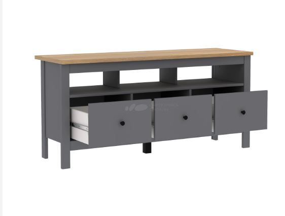 Тумба САГА 3 ящика, серый/ясень — тумба с открытой полкой и тремя выдвижными ящиками