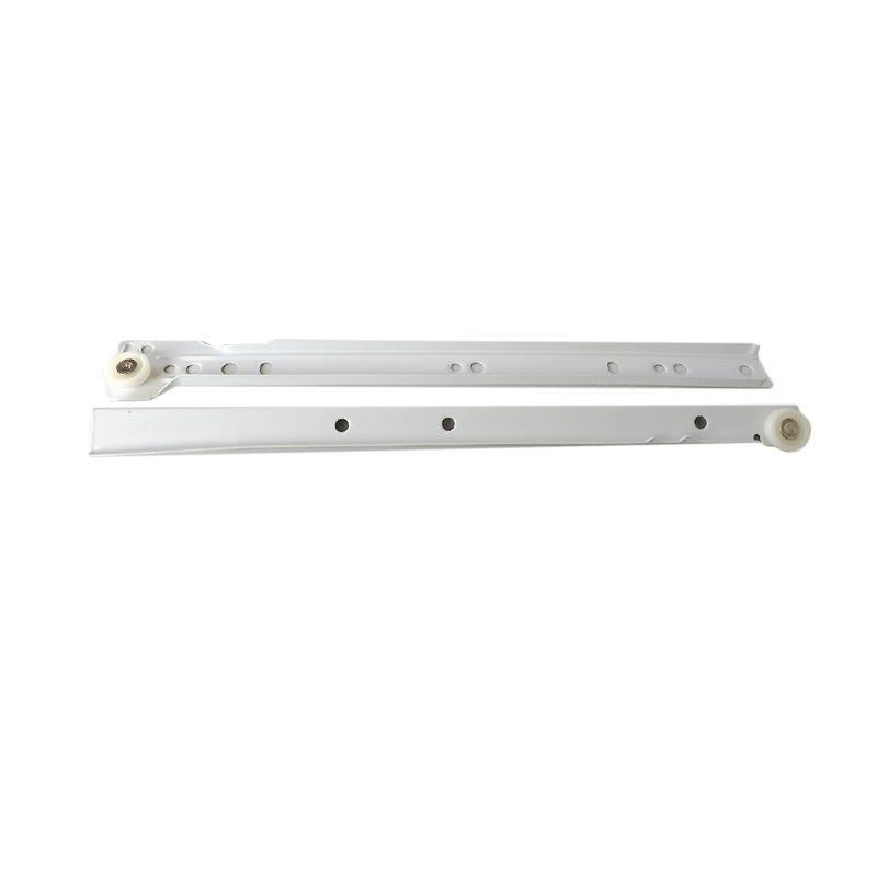 Роликовая направляющая для выдвижных мебельных ящиков. Обеспечивает неполное выдвижение и плавный ход при бытовой эксплуатации.