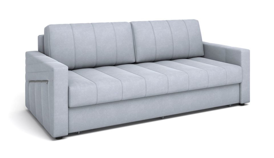 Это прямой диван-кровать с лаконичным современным дизайном и продуманной конструкцией для повседневной эксплуатации. Карманы на молнии в подлокотниках добавляют модели практичности.