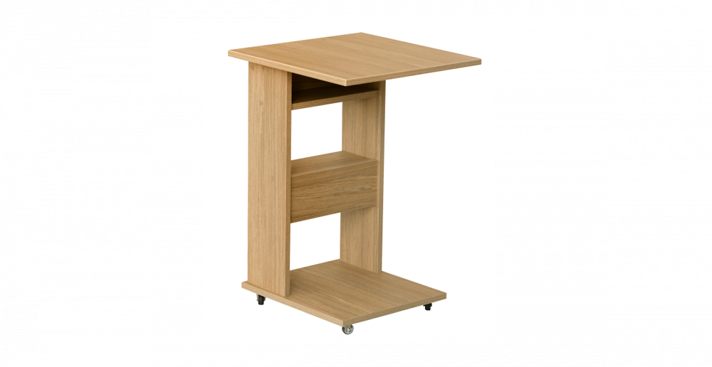 Это придиванный столик для размещения рядом с мягкой мебелью в гостиной или спальне. Модель удобно использовать для чаепития, работы с ноутбуком или хранения повседневных мелочей, а колесики помогают легко перемещать столик по комнате.