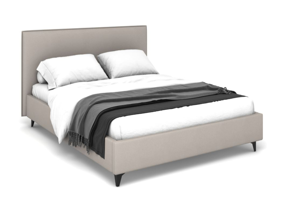 Кровать «Ингрид» — мягкая модель в скандинавском стиле с высоким изголовьем и приподнятой посадкой на металлических опорах. Лаконичная форма и текстильная обивка делают её удобной основой для современной спальни.