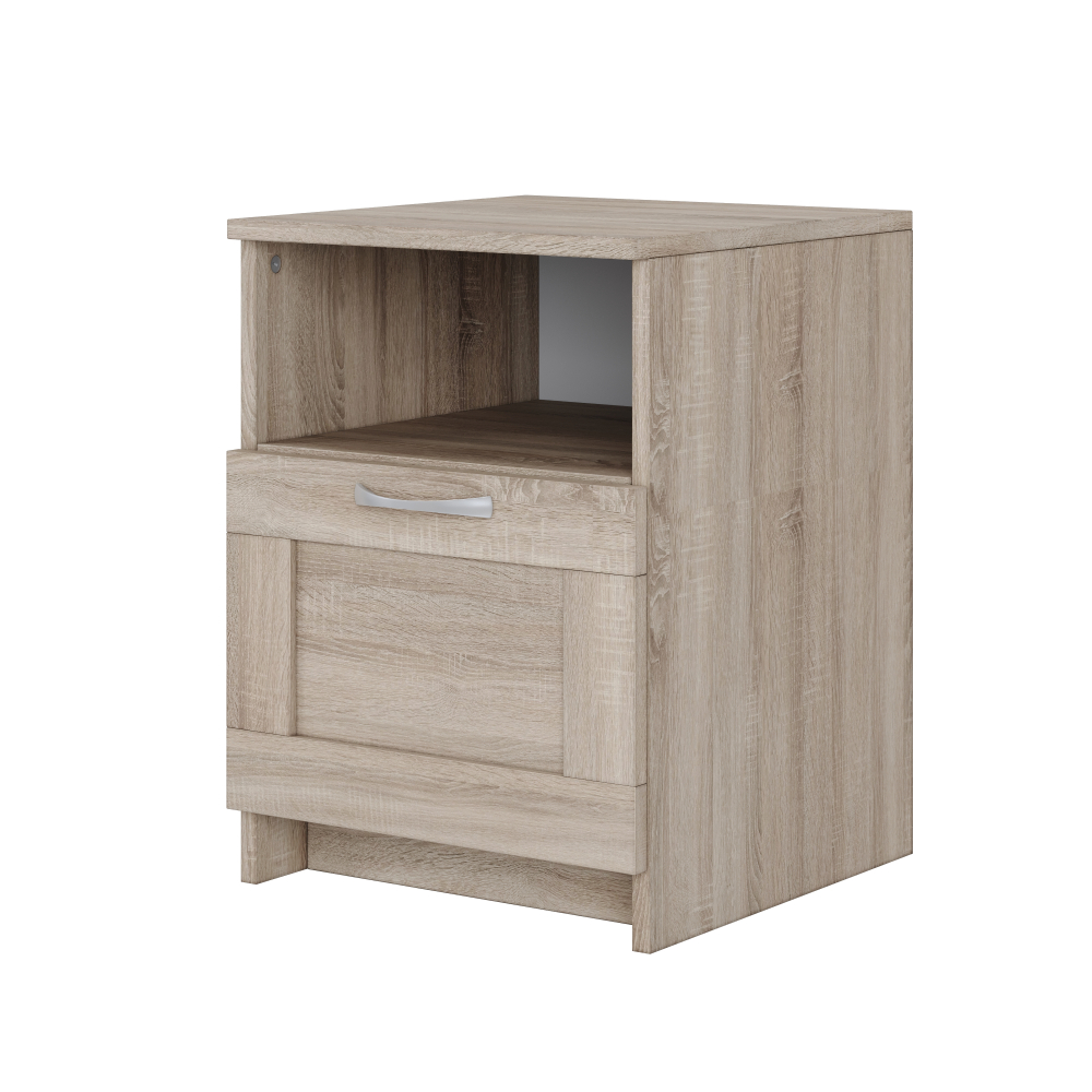 Прикроватная тумба из коллекции «СИРИУС» с выдвижным ящиком и открытой нишей. Компактный формат позволяет разместить рядом с кроватью всё необходимое для ежедневного использования — от книги и телефона до ночника и мелких аксессуаров.