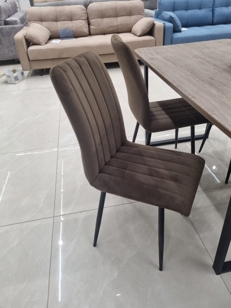 Это интерьерное кресло на металлическом каркасе с мягкой велюровой обивкой для кухни, столовой зоны или современного жилого пространства. Модель сочетает лаконичный силуэт, комфортную посадку и устойчивое основание, поэтому подходит для повседневного использования.