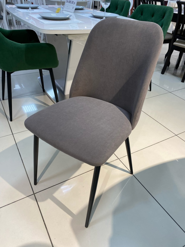 Это мягкий стул-полукресло для кухни, столовой зоны или гостиной на металлическом основании. Модель отличается широкой удобной спинкой, устойчивыми ножками и велюровой обивкой, поэтому подходит для ежедневного использования в домашних интерьерах.