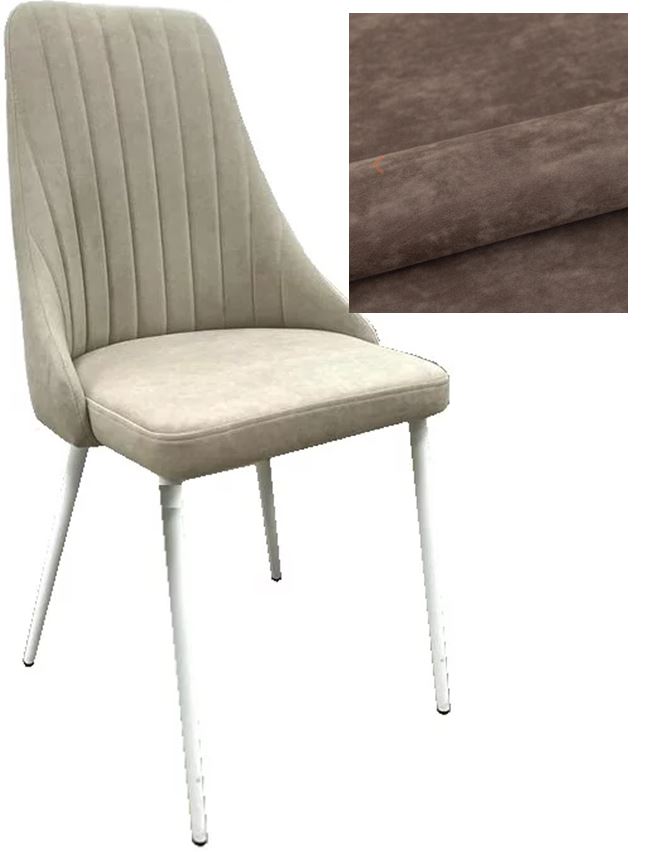 Мягкий стул-полукресло с обивкой велюром Opera в тёплом оттенке какао и белым металлическим каркасом.