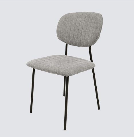 Мягкий кухонный стул с металлическим каркасом и обивкой светло-серой тканью, рассчитанный на ежедневную эксплуатацию.