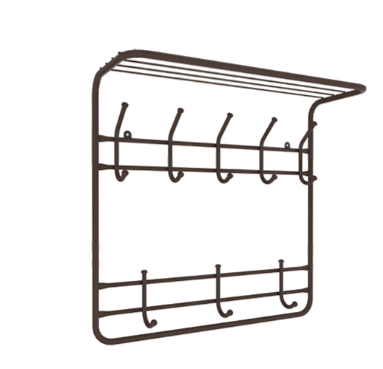 Настенная вешалка 2‑х ярусная длиной 60 см коричневого цвета – металлическая вешалка с двумя уровнями перекладин и крючков. Такая конструкция позволяет разместить больше одежды при той же ширине, что удобно для небольших прихожих.