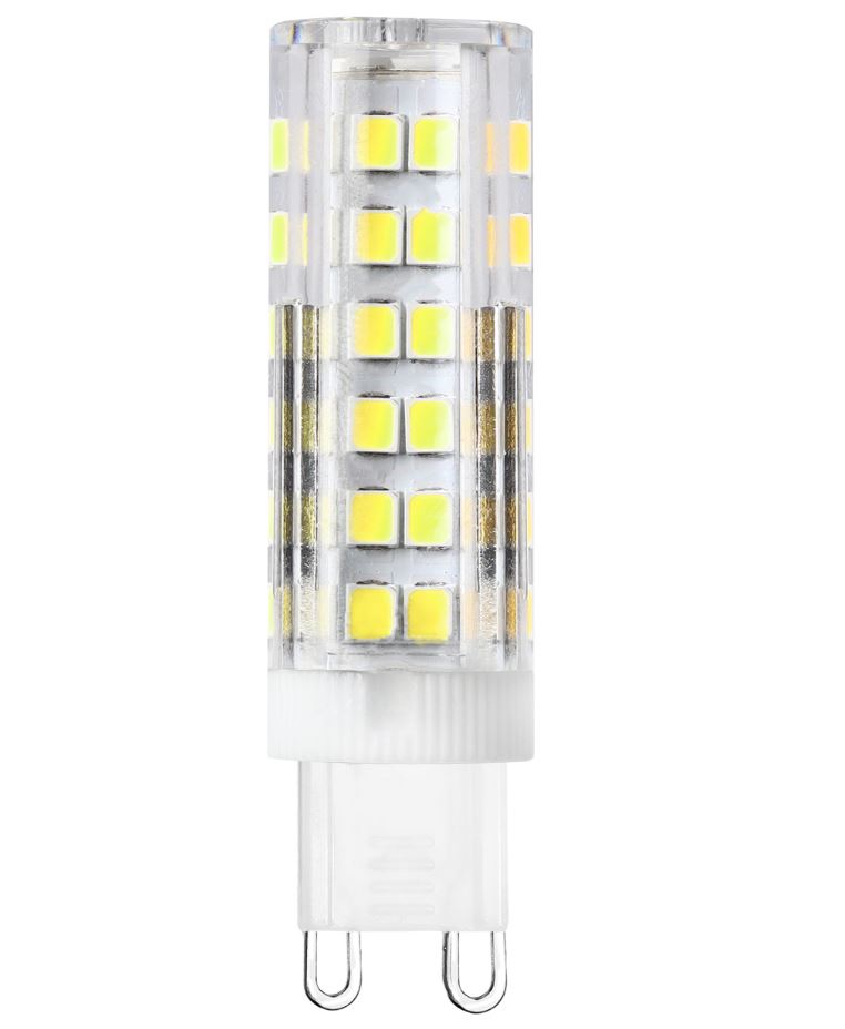 Компактная светодиодная лампа с цоколем G9 для бытовых и декоративных светильников. Даёт холодный белый свет при снижении энергопотребления по сравнению с лампами накаливания.