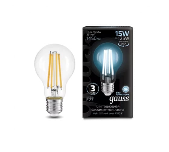 Лампа светодиодная филамент 15Вт 4100К Е27 Gauss