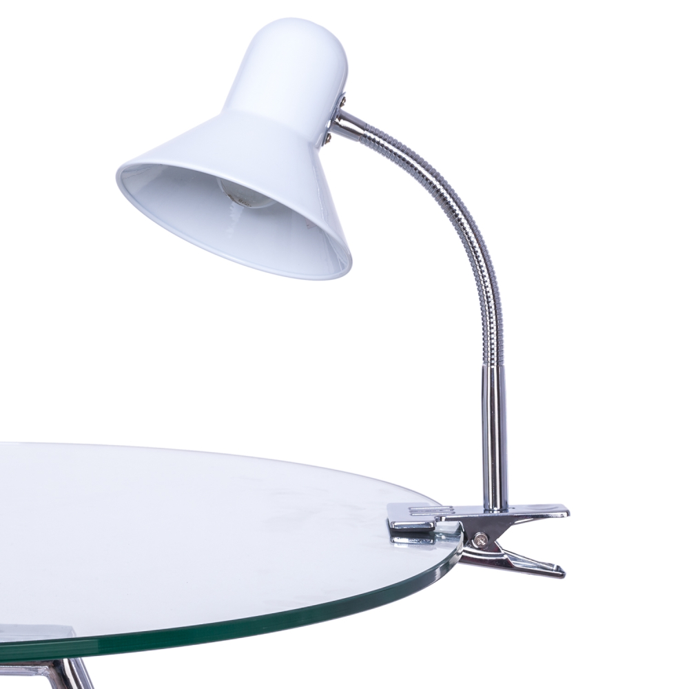 Настольная лампа на прищепке для удобной подсветки рабочего места. Крепление позволяет быстро установить светильник на край стола или полки и направить свет туда, где он нужен.