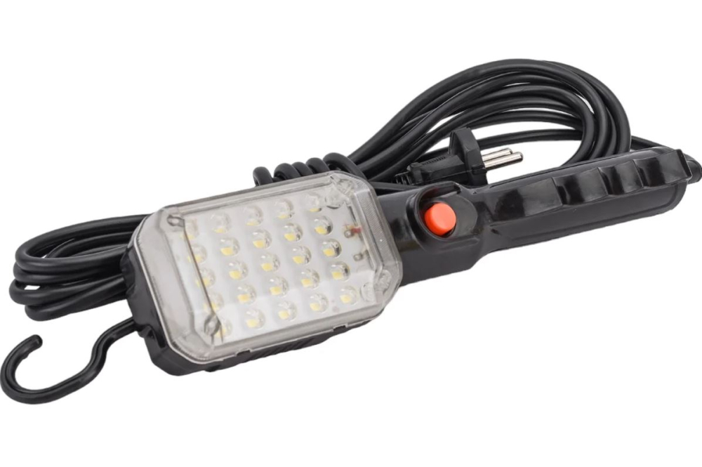 Применяется для локального освещения при ремонте автомобиля, в гараже, мастерской и на строительных работах внутри помещений.