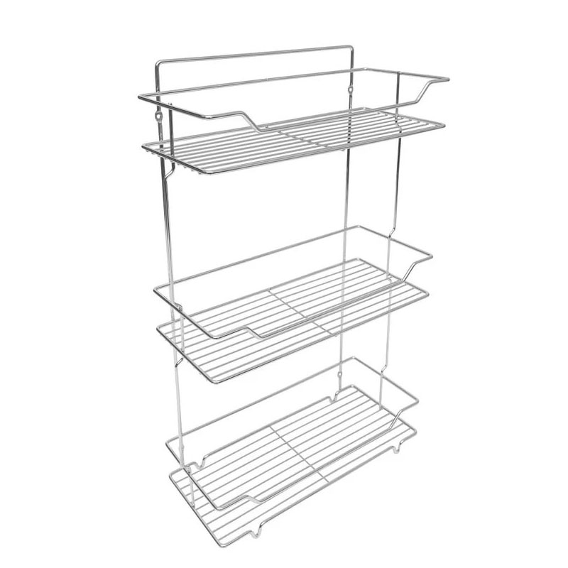Металлическая трёхъярусная полка для хранения предметов гигиены и аксессуаров. Крепится на стену и помогает организовать порядок, освобождая место на бортах ванны и раковине.