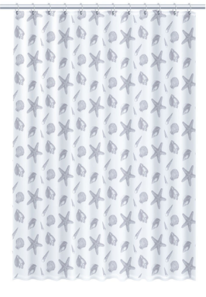 • Эстетичный дизайн с изображением ракушек придаёт ванной комнате привлекательный вид.