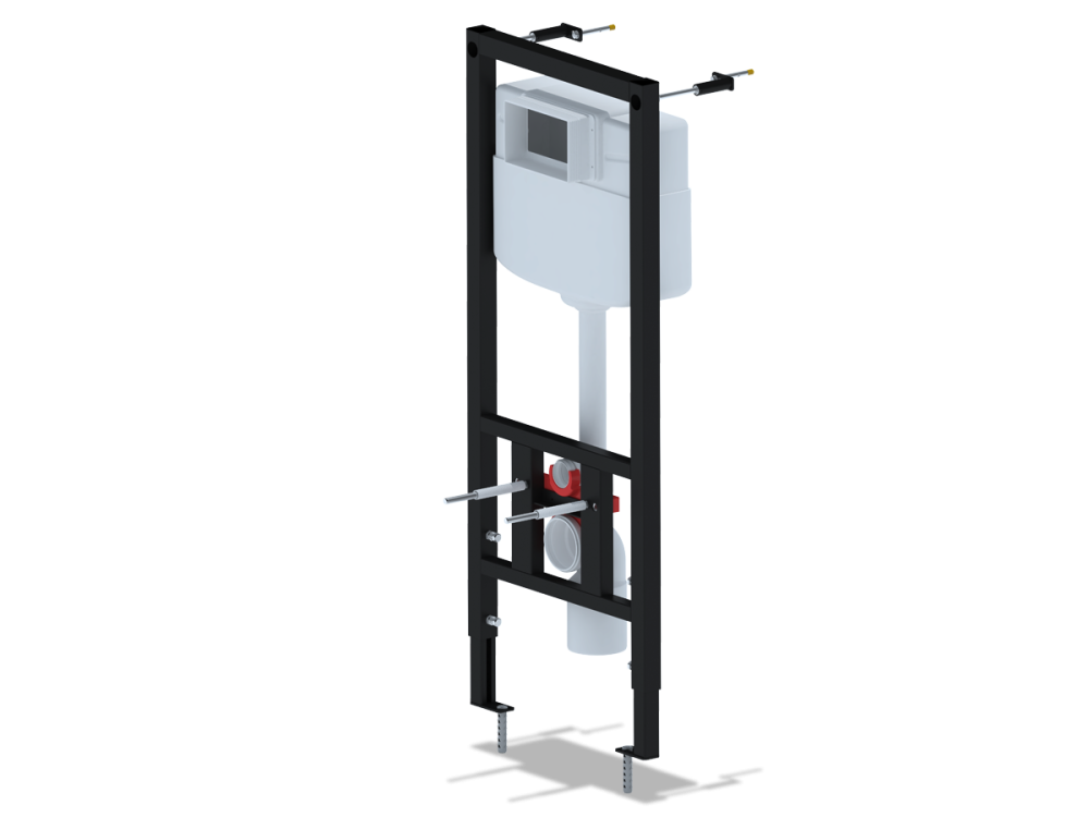 Система скрытого монтажа для подвесного унитаза с металлической рамой и бачком. Предназначена для установки в нишу или за фальшстену и подключения к канализации и водоснабжению.