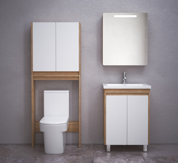 Зеркало-шкаф Остин 60 C выполнено в цвете сонома и предназначено для установки в ванной комнате. Он сочетает в себе функциональность зеркала и шкафчика, что делает его идеальным решением для хранения косметики и туалетных принадлежностей.