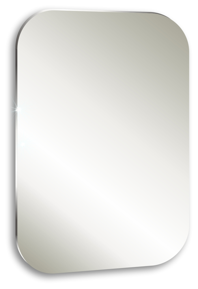 Настенное зеркало прямоугольной формы с «мягкой» геометрией и скруглёнными углами. Подходит для современного оформления ванной комнаты.