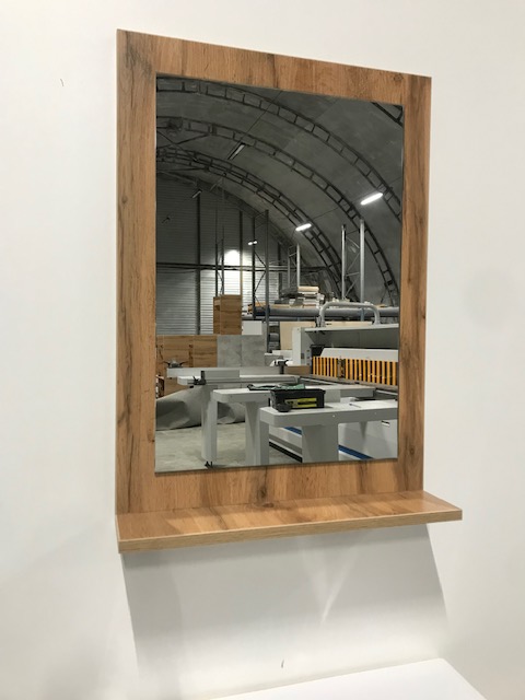 Настенное зеркало с полочкой для ванной комнаты. Позволяет удобно разместить повседневные принадлежности и пользоваться зеркалом без лишних аксессуаров.