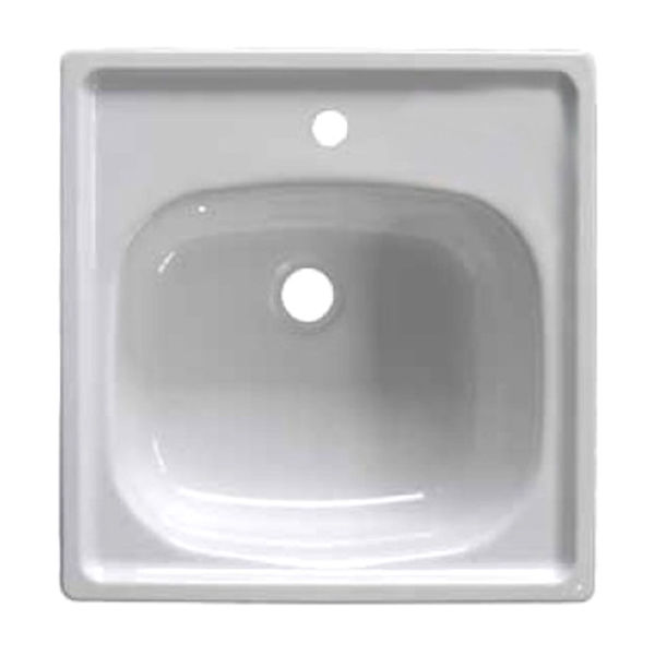 Кухонная накладная мойка из эмалированной стали. Квадратная форма 500×500 мм подходит для установки на подстолье или кронштейны.