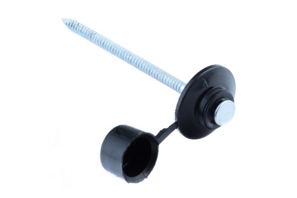 Гвозди с закрытой шляпкой, черные, 100 шт Кровельные гвозди для крепления волнистых листов и доборных элементов на скатной кровле. Закрытая шляпка помогает защитить место крепежа от попадания воды.