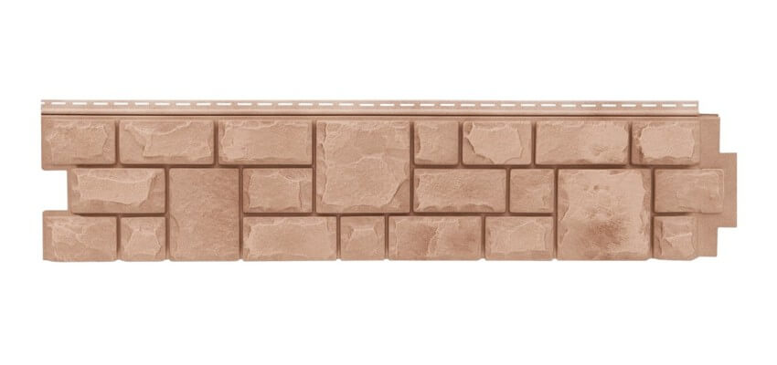 Фасадная панель "Екатерининский Камень" Янтарный представляет собой декоративный сайдинг, выполненный из поливинилхлорида (ПВХ). Он имитирует натуральный камень, обеспечивая солидный и современный внешний вид фасада зданий.